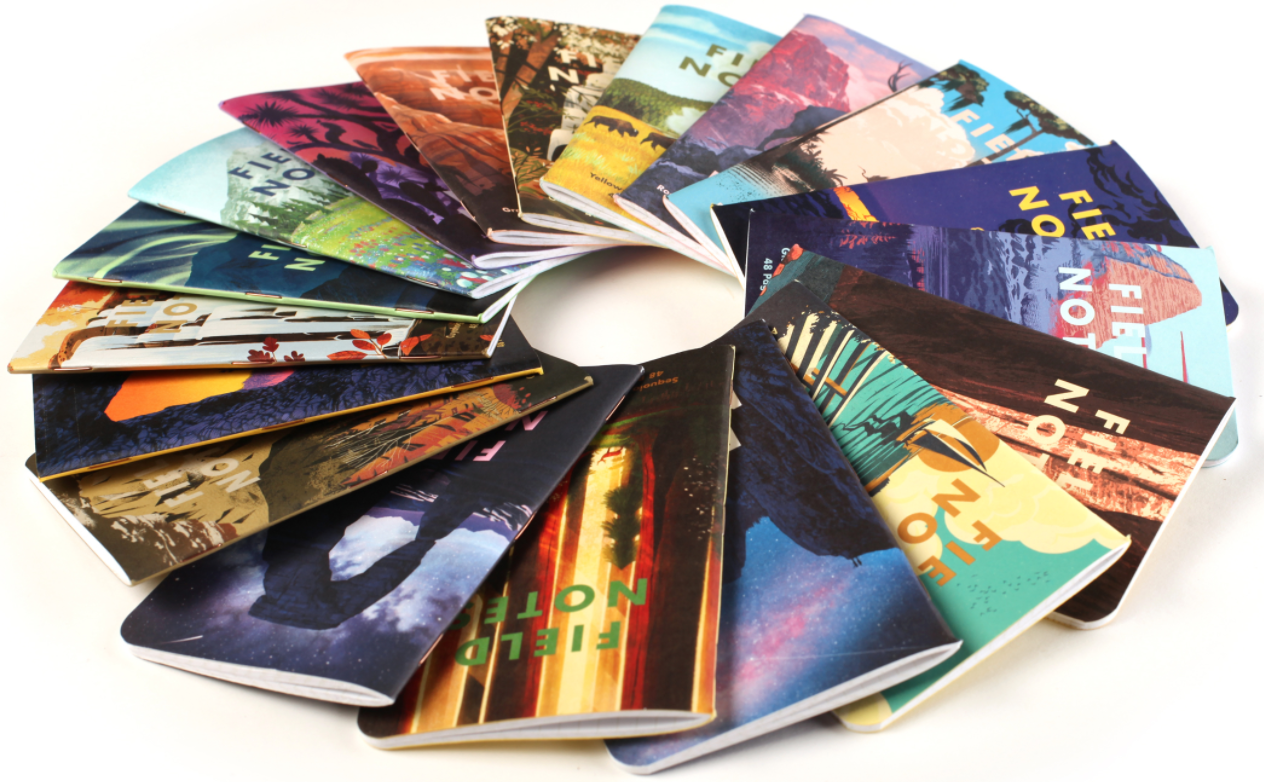 Fifty Nine Parks produced a poster series for our National Parks. Field Notes has printed 18 of these posters of the Parks on the covers of these notebooks. They are Yosemite, Zion, Acadia, Grand Canyon, Joshua Tree, Mount Rainier, Rocky Mountain, Great Smoky, Yellowstone, Grand Teton, Arches, Sequoia, Denali, Cuyahoga Valley, Olympic, Glacier, Hawaii Volcanoes, and Everglades. These 18 notebooks come in six 3-packs and the price includes free shipping to United States addresses only.